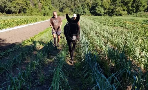 Votre ferme à Porto-Vecchio, réalise le binage des poireaux avec l'âne Billy afin de…